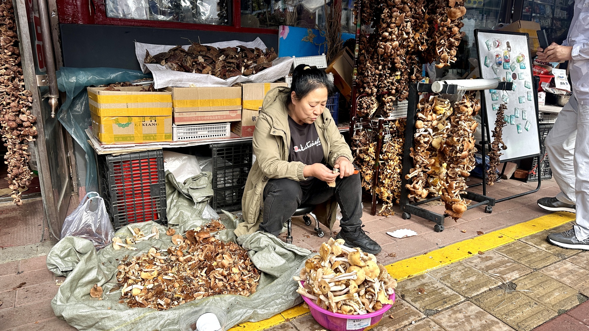商户正在处理刚采摘的菌菇(央广网记者 张瀚予 摄)