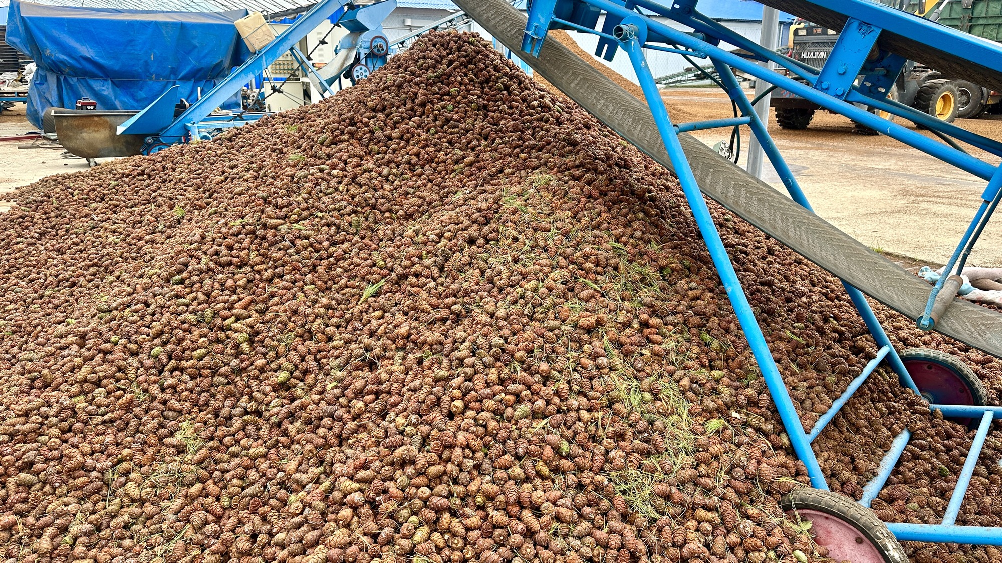 准备进行加工的新鲜偃松塔(央广网记者 张瀚予 摄)