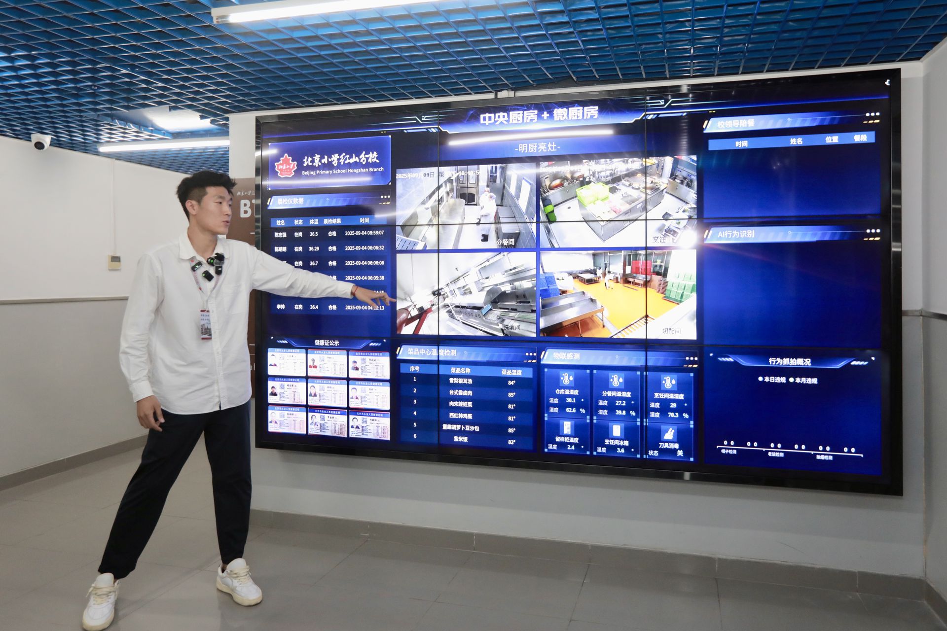 闫续介绍,学校秋季首次投入智慧物联监管系统,同时设置了食品留样柜、物联冰箱,保证从食材到出品不留监管死角;为了解决中远端央厨缺少监管的难题,通过连接粗加工、切配、烹饪、洗消等关键场景的视频信号,在微厨房端即可对中央厨房中的画面进行监控,督促中央厨房规范粗加工与洗消操作。学校通过“设备互联+数据互通+动态监管”模式,形成“来源可溯、过程可控、风险可防、责任可追”的闭环管理体系。