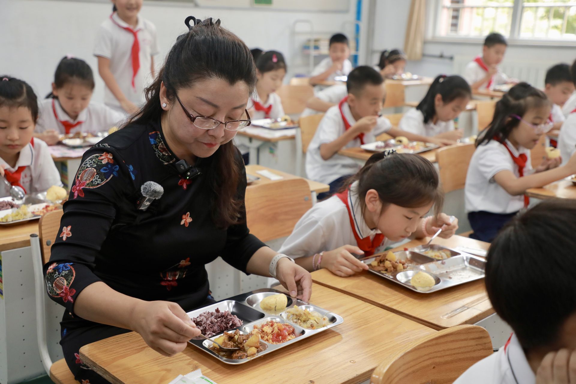 “让每一个红山宝爱上校园餐”,这是北京小学红山分校党支部书记、校长蔡京华一直和记者分享的观点。9月4日中午,蔡京华走进班级陪孩子们一起品尝校园餐,仔细倾听孩子们对菜品味道和种类的想法。三年级(2)班的袁梓怡同学开心地告诉她:“午餐的每道菜都很好吃,比我妈妈做的还要好吃。”