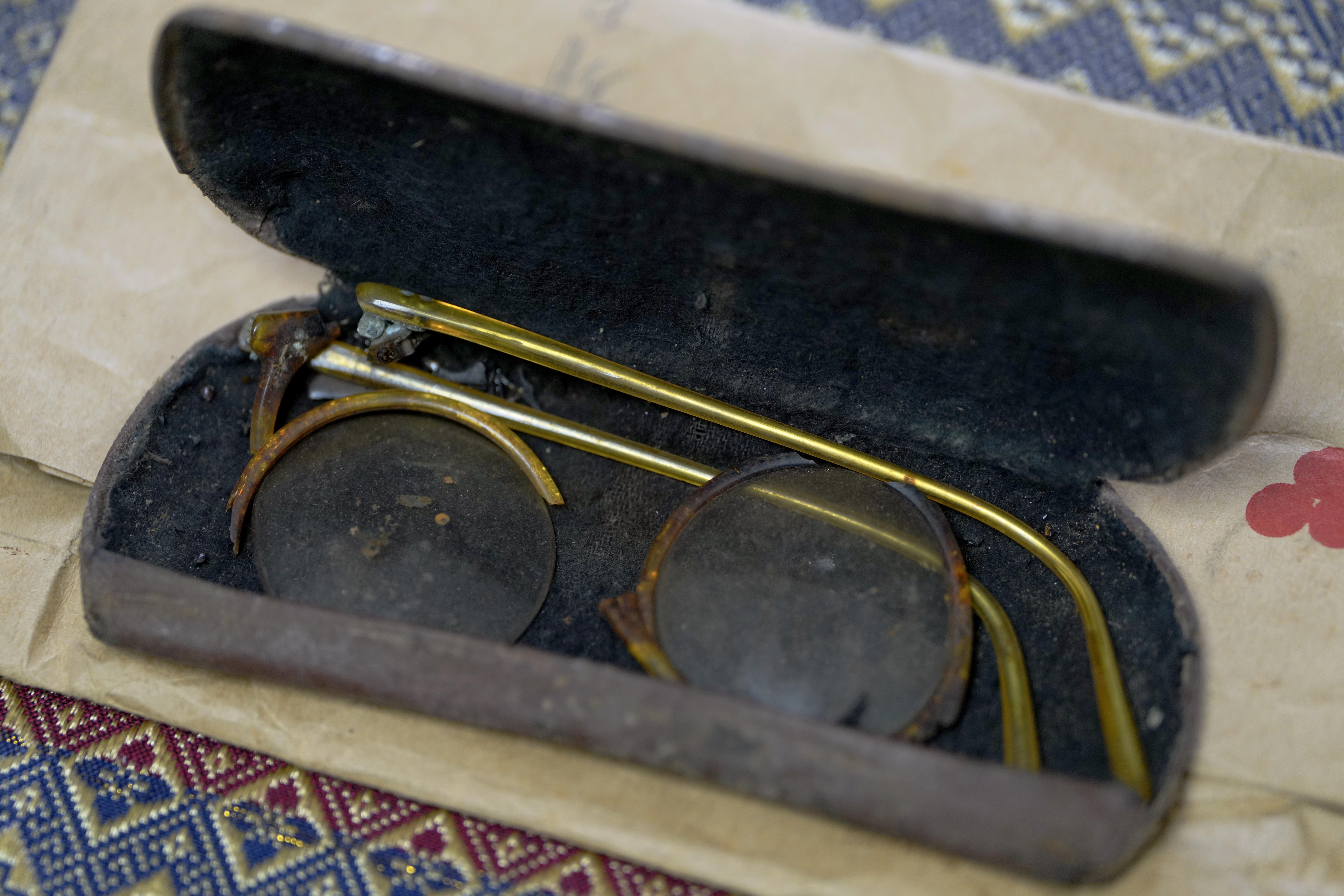 陈宝仓将军的外孙女李敏,轻轻捧起一个旧眼镜盒。里面装的眼镜,两个镜片连接处已经断开,一只眼镜腿也断裂了。这副眼镜,正是当年陈宝仓将军在青岛期间所佩戴的。