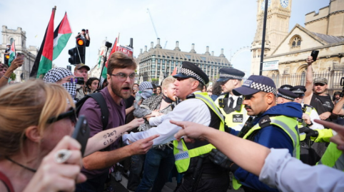 据美联社等外媒报道,英国伦敦当地时间6日爆发大规模支持巴勒斯坦抗议示威活动。其间,警方与抗议者发生冲突,并逮捕400多人。