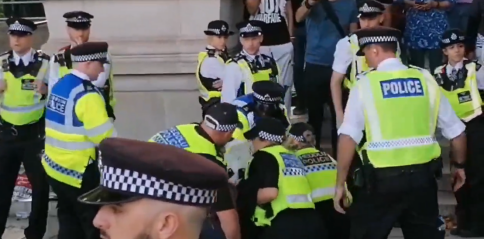 警方在抗议活动开始几分钟后开始逮捕示威者。有围观者高喊“你们真可耻”“选边站——正义还是种族灭绝”等。在警员强行拖拽拒绝自行离开的示威者时,现场出现扭打和激烈争吵。