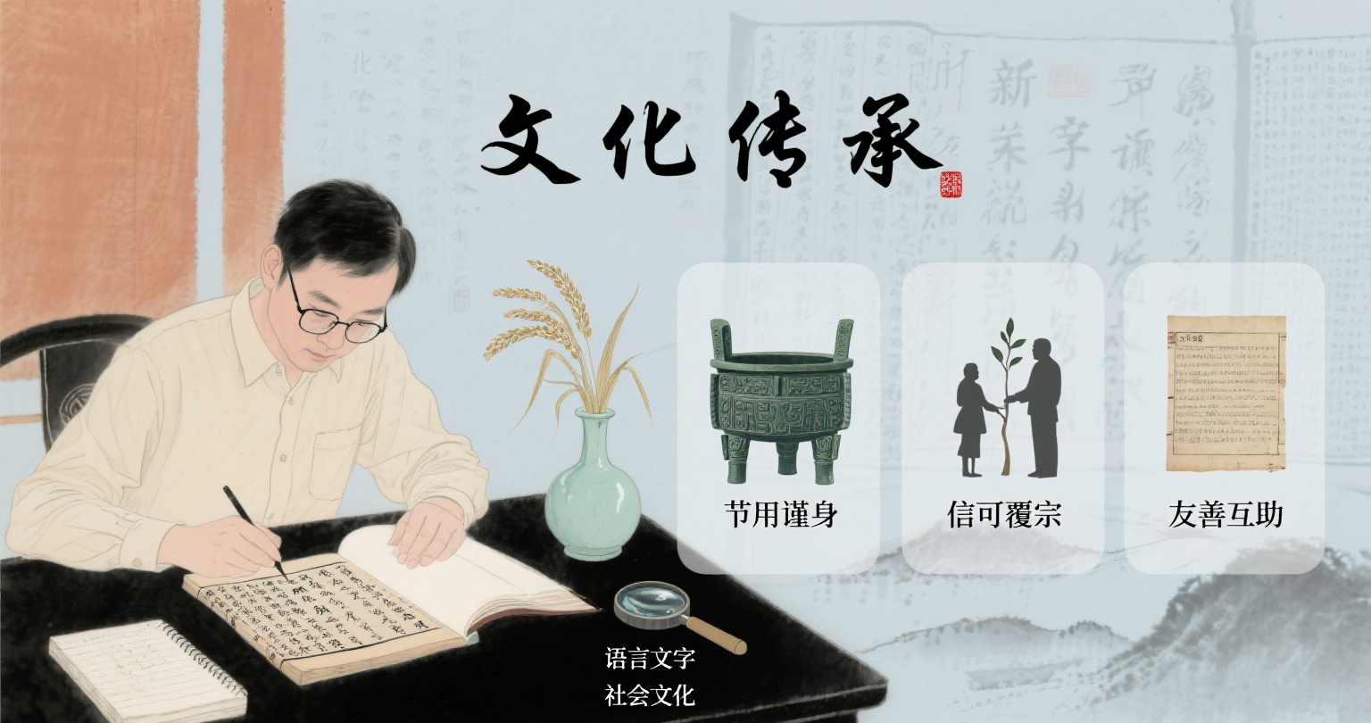 在现代,《千字文》依然是文化研究的珍贵资料。学者们通过对《千字文》的研究,可以深入了解南北朝时期的语言文字、文学艺术、社会文化等方面的情况。更重要的是,它蕴含的传统价值观与当代需求高度契合 ——“节用谨身” 的节俭观、“信可覆宗”的诚信观、“友善互助”的处世观,都对于促进社会和谐、提高公民素提供了传统智慧的滋养。