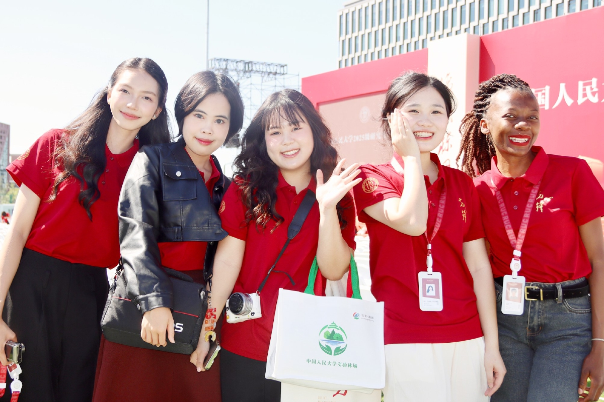 中国人民大学通州校区开学典礼现场,学生们合影留念,梦想与笑容在此刻定格。