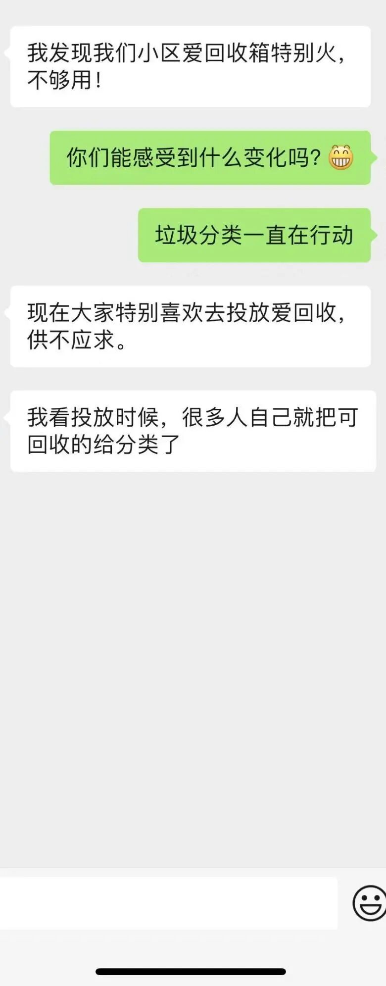 呼家楼街道在小庄社区引入智能回收机后,不仅本小区的居民使用热情高,周边的金台里8号院等居民也纷纷将家中的旧衣物、旧书籍等可回收物带来投递。回收机日均接收旧物超200件。累计回收可回收物超400公斤。周边街乡的垃圾分类工作人员也纷纷赶来现场了解学习智能回收机的“便捷之处”。