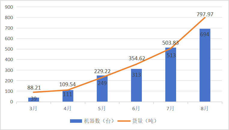 截至目前,我区已有350个小区设置可回收物智能回收机,共计安装近700台,参与用户数超10万户,投递次数近100万次,回收量2239吨,提现金额100.75万元。