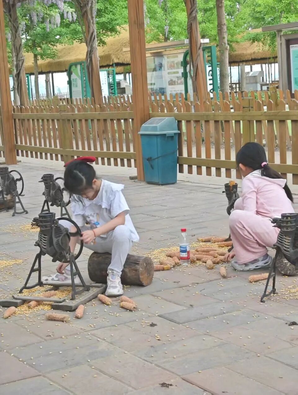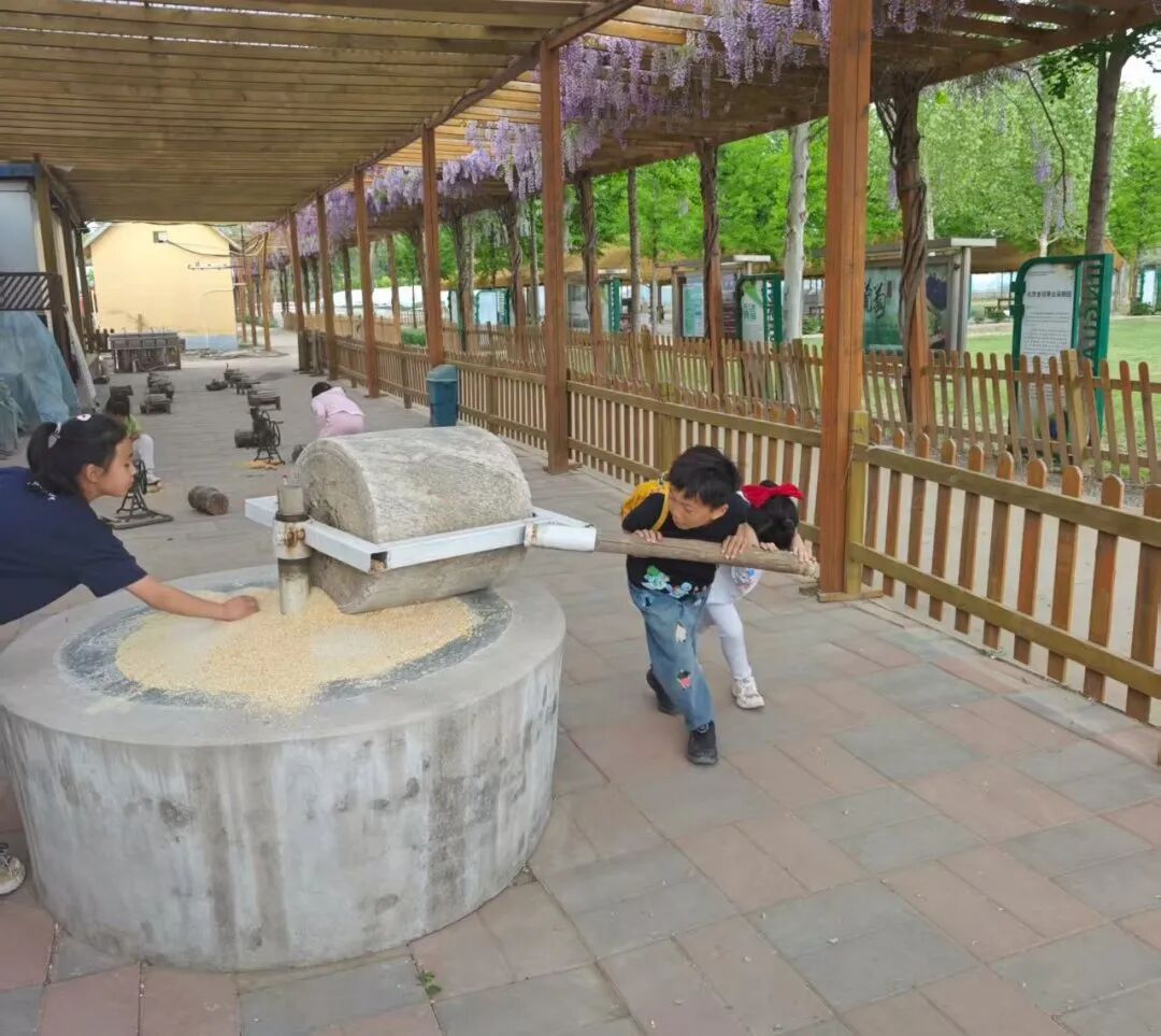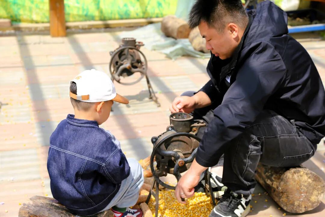 小朋友们可以戴上小手套,体验脱玉米粒、小石磨豆浆的乐趣,听玉米粒 “哗啦啦” 掉进筐里的声音,比谁剥得又快又完整。