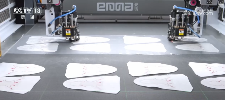 在广东东莞这家民营数控设备生产车间里,可360度旋转的视觉识别智能裁切机通过算法与精密机械联动。能在短短6秒内精准识别并快速裁切出运动鞋的鞋面,效率比传统刀模生产提升6倍,精准度高达0.1毫米。