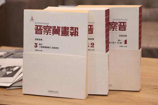 ▲图为《晋察冀画报》摄影记者高粮使用并保存的照相机、北平解放报记者证,以及《晋察冀画报文献全集》《众志成城——抗日根据地影像纪实》。