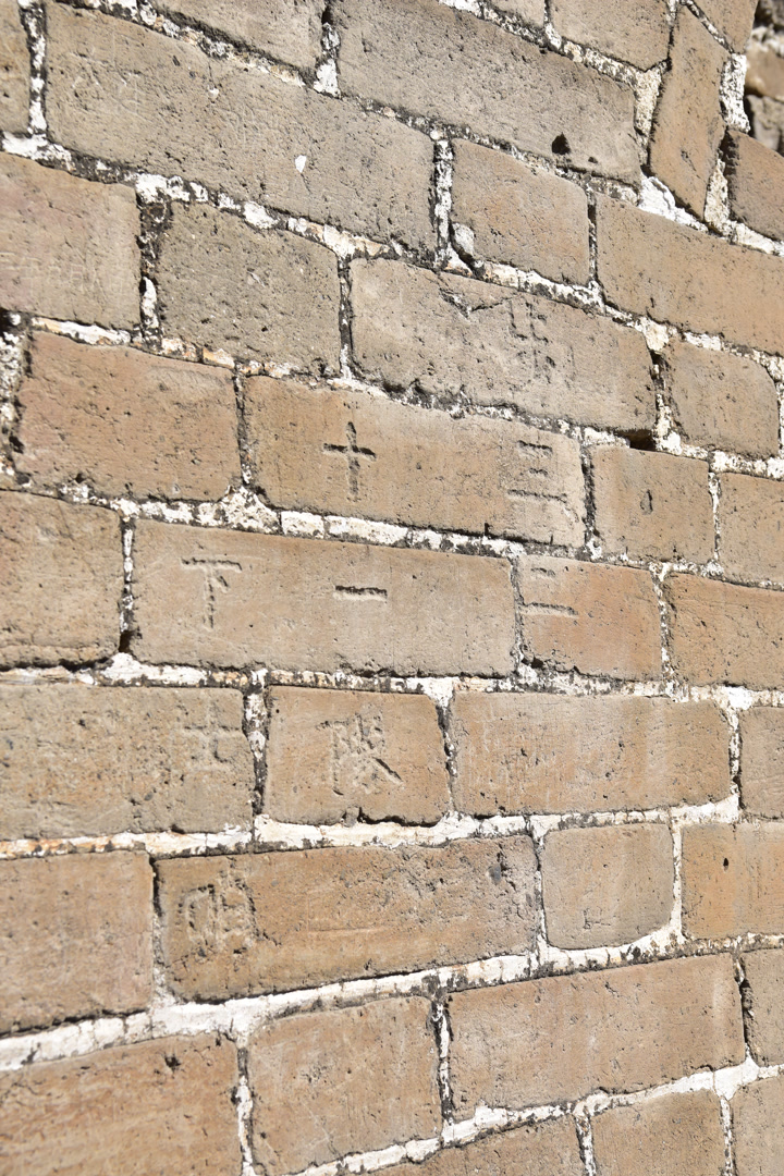 他却意外发现,“将军楼”一块斑驳的墙砖上,刻着“步兵十七联队占领”字样。继续向前,不远处的“郝望楼”西立面砖墙上,又有“步三二十一队下士哨”字样,南侧箭窗内壁上,还有一处刻有“小野上等兵”,笔画更粗、字口更深。