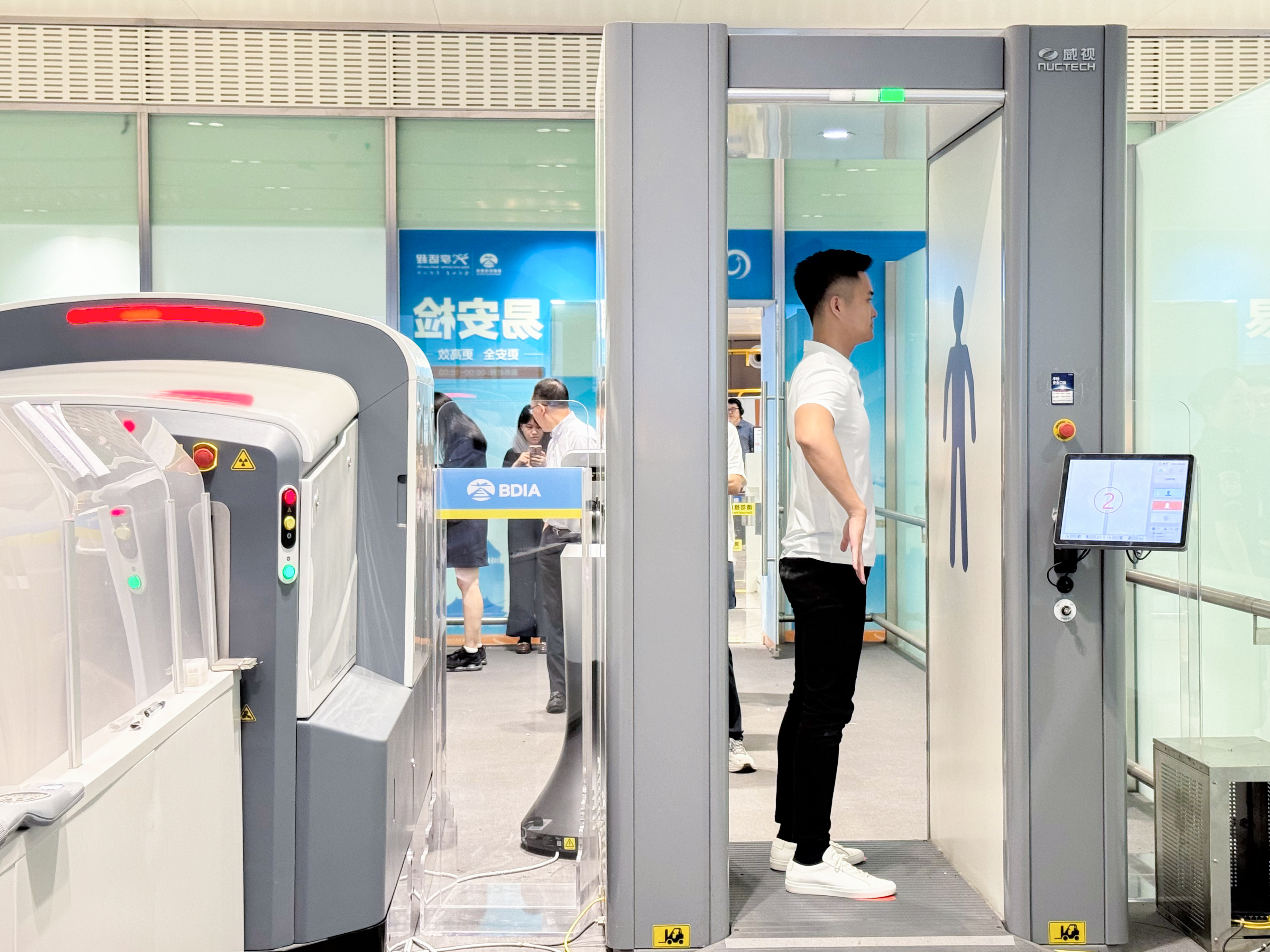 易安检通道集成智能安检系统和自助验证闸机功能,支持旅客凭身份证“无纸化一证通关”,减少人工核验环节。核心安检设备同步升级,采用“毫米波安全门+手提行李CT机”,确保安全的同时提高通行效率。