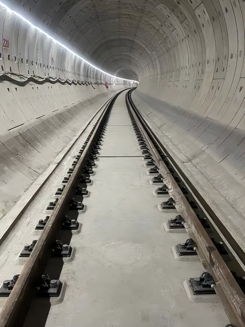 逆作法“先铺后灌”技术,攻克了一体化灌注、轨道板抗浮等一系列重大技术难题,将传统工艺的17道工序减少为2道;“测-控-调”一体精调技术,融合智能设计、自动测量、动态计算、自动精调等功能,高精、高效,全面取代人工作业,每块板的精调时间由30分钟减少至1分钟;施工人员减少70%,施工综合效率提升2倍以上。
