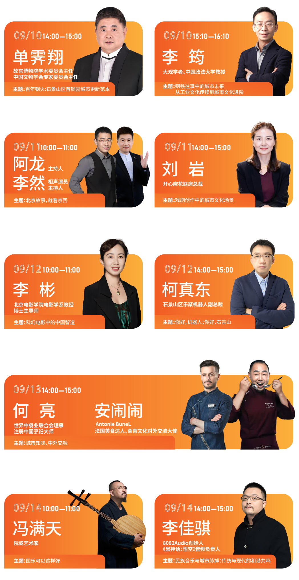 本次,邀请到故宫博物院专家、高校教授、企业高管等重磅嘉宾,在服贸会期间,空降超级直播间!围绕城市更新、文旅融合、科技智造等核心话题展开深度对话,每场访谈都是一次难得的行业洞察盛宴!