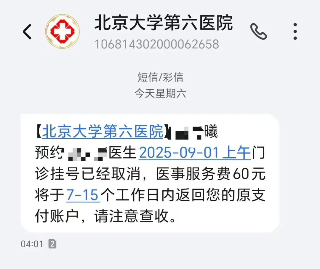 连日蹲守、几经周折,天津的张先生终于为孩子抢到了北京大学第六医院的专家号。然而,喜悦没能持续多久,8月30日凌晨,一条突如其来的取消挂号通知,让这个家庭再度陷入焦虑。张先生不禁疑惑,自己明明什么操作也没做,好不容易抢到的号怎么就没了?这一莫名“消失”的专家号背后,究竟发生了什么?