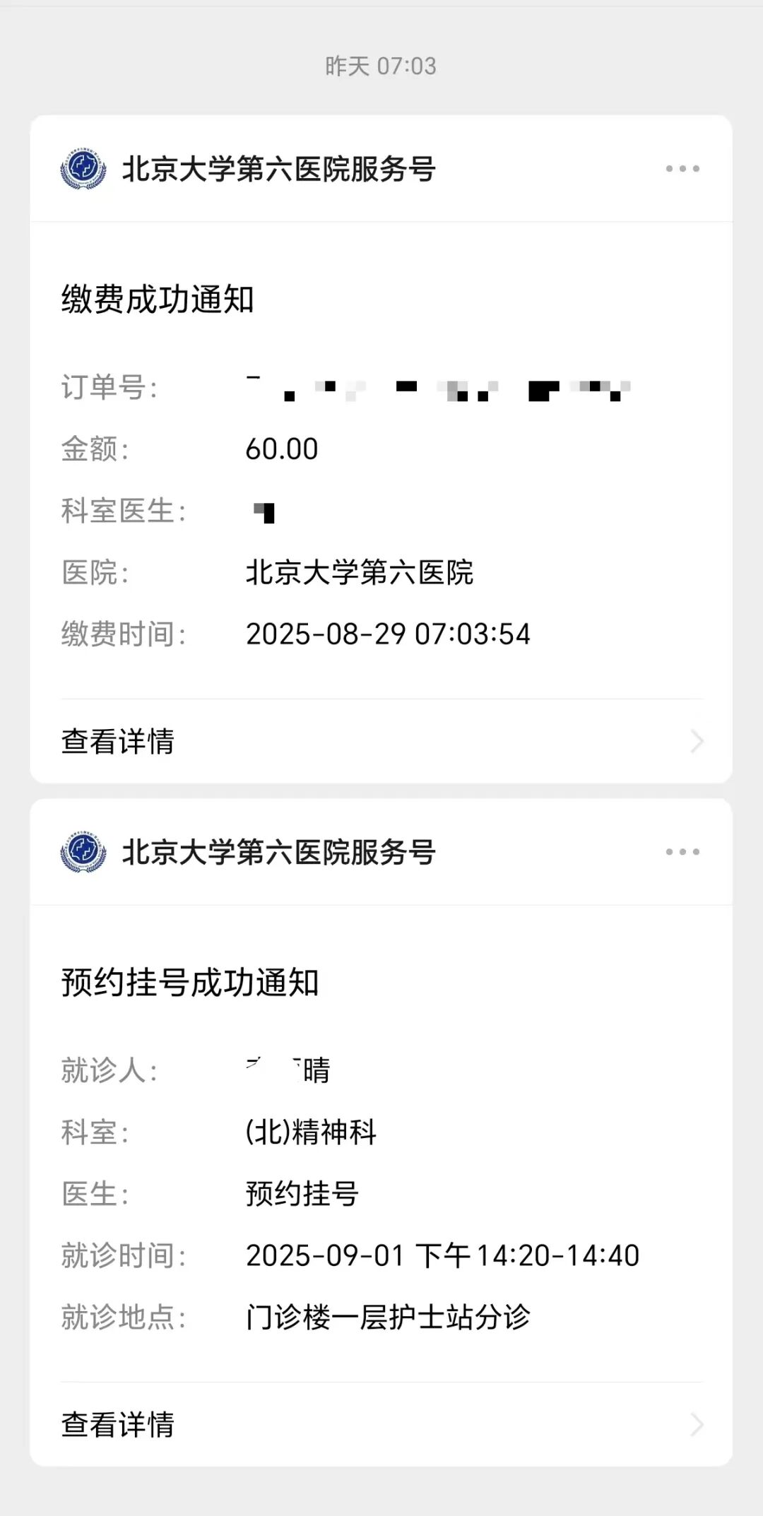 经过多方咨询,张先生和家人得知北京大学第六医院(简称 “北大六院”)在儿童情绪与行为障碍治疗领域颇具专长。从8月起,他便开启了 “抢号模式”:线下排队、线上紧盯,只为能挂到该院的专家号。