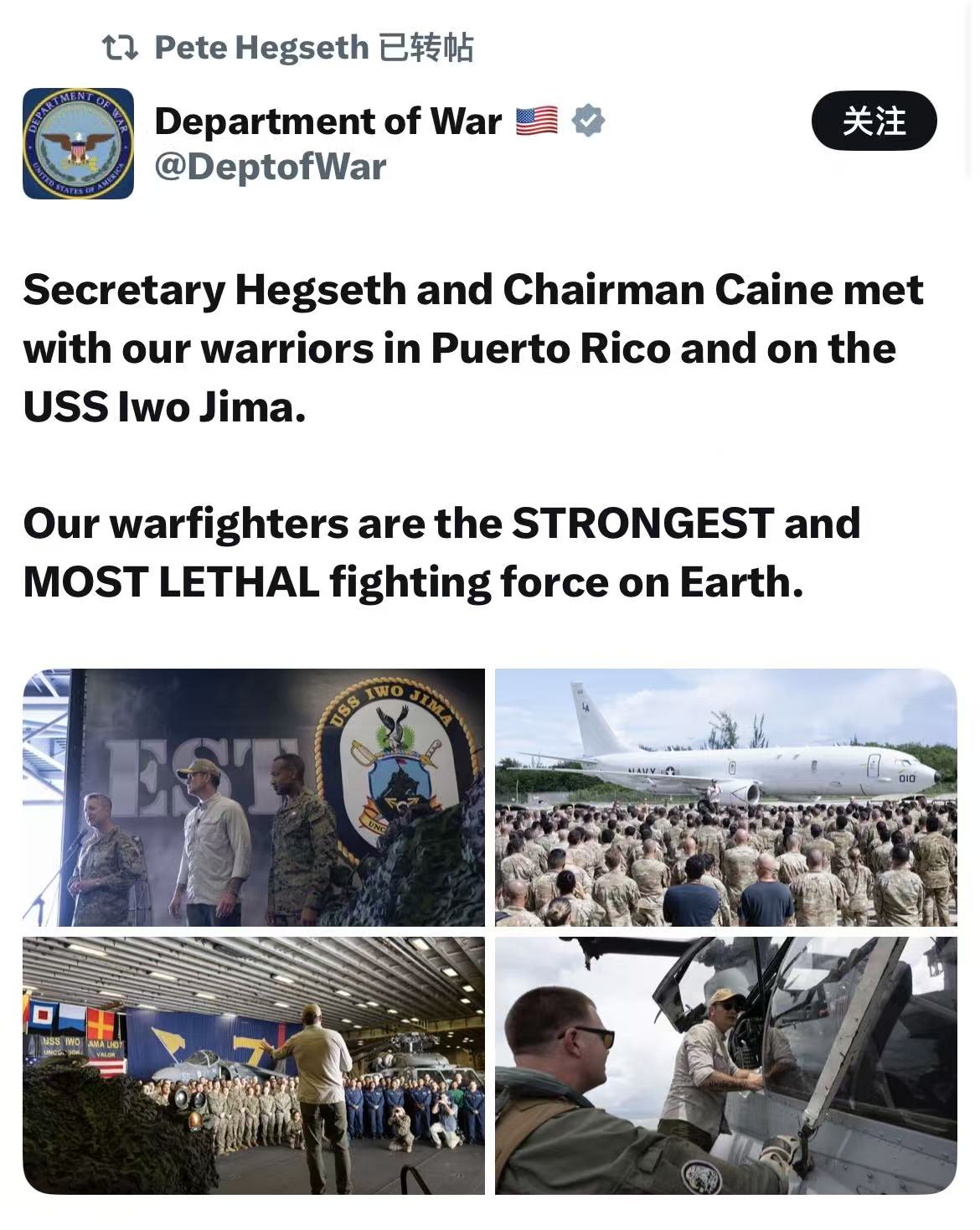 美国国防部长赫格塞思8日抵达地处加勒比海的美国海外领地波多黎各进行访问。此访正值美国以“扫毒”为名持续加强在委内瑞拉附近加勒比海域军事存在之际。
