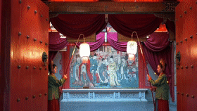 木质楼阁重施新彩,朱红与橙黄交融映照,琳琅满目的商品、此起彼伏的叫卖声……让人瞬间穿越到千年前的金代。这里就是今年夏季焕新升级的全景式金代文化体验项目——长白山·金1172情景式金代主题演艺街区。该项目采用“文化+科技+演艺”的融合模式,深度挖掘金代与长白山的历史渊源。街区分为三大主题区域、八大功能板块,系统展现金代社会生活、宗教信仰和文化艺术。