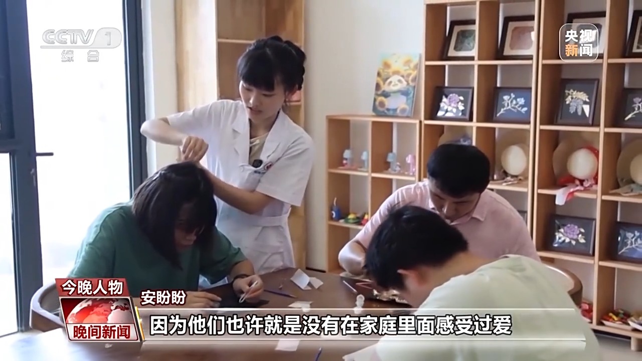 安盼盼:根据每个小孩不同的情况,制定每天不同的课程,个性化教学,因为他们也许没有在家庭里面感受过爱,所以不知道具体的爱什么,要教会他。