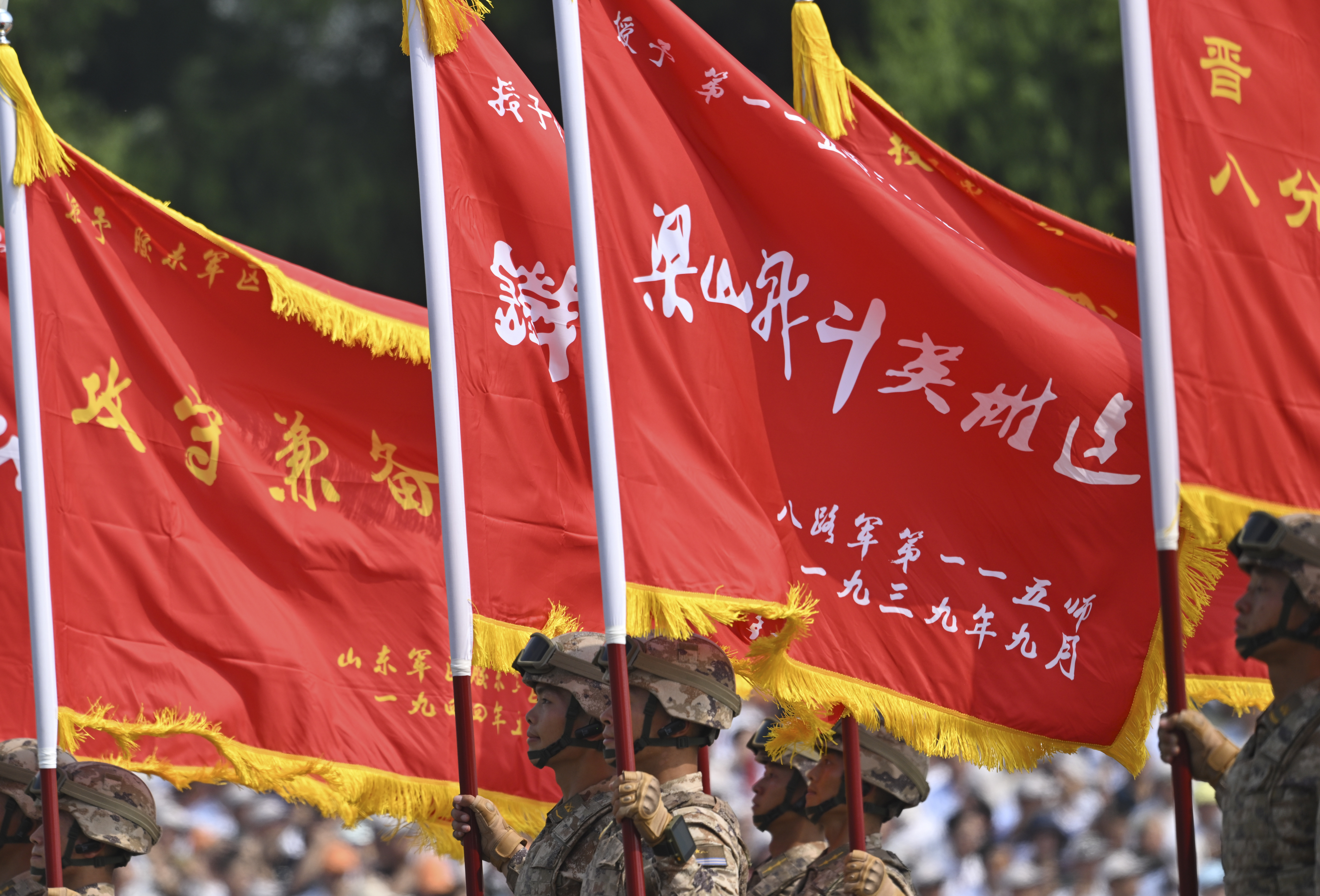 十四载浴血抗战荣光不朽,八十年砥砺奋进步履铿锵。那一面面火红的战旗,如云霞、似火焰,在人们关注的目光中升腾!