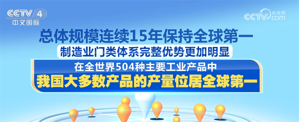 “十四五”期间,我国制造业数据亮眼。五年来,我国全部工业增加值从2020年的31.3万亿元增长到2024年的40.5万亿元,制造业增加值增量预计将达到8万亿元,对全球制造业增长贡献率超过30%。总体规模连续15年保持全球第一;制造业门类体系完整优势更加明显,在全世界504种主要工业产品中,我国大多数产品的产量位居全球第一。