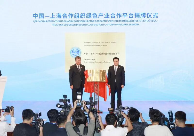 图为中国—上海合作组织绿色产业合作平台揭牌仪式现场。新华社发