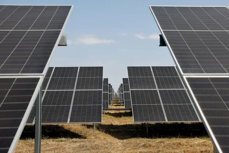 图为中国电气装备集团旗下平高集团国际工程有限公司承建的罗马尼亚31.8兆瓦光伏电站项目现场的光伏发电板。新华社发(克里斯泰尔摄)