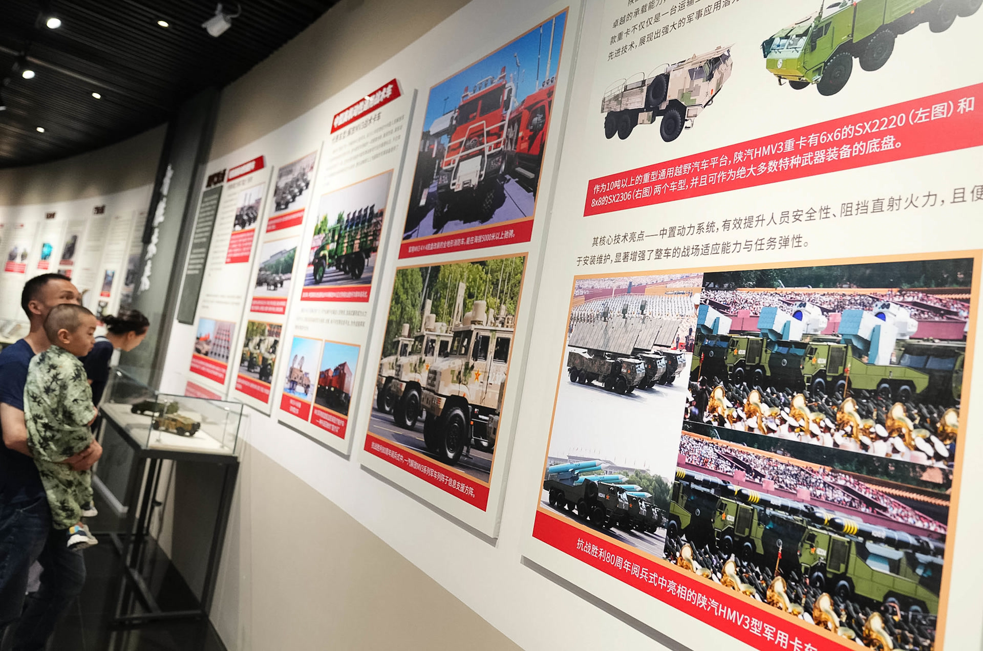 看完实物军车,一层大厅外围的环形走廊上,是“戎耀——从烽火轮痕到智造征途”军车主题展的展览区。该展览分为四部分,通过文字图片、历史影像、实物等方式,全方位呈现了我国军车从战争年代到智能制造时代的发展历程。“烽火丰台”——从抗日战争出发,展现铁血岁月中军车作为抗战生命线、战略支撑点的动人故事;“铁马征程”聚焦新中国成立初期的军车工业,重现那段艰苦卓绝而光辉奋斗的历史;“自主腾飞”展现改革开放以来我国军车工业体系逐步完善、军民技术深度协同发展的进程;“智胜未来”则突出近年来我国在无人作战平台、新能源装备、智能指挥车等领域的突破性进展,彰显“中国制造”迈向“中国智造”的雄厚实力。
