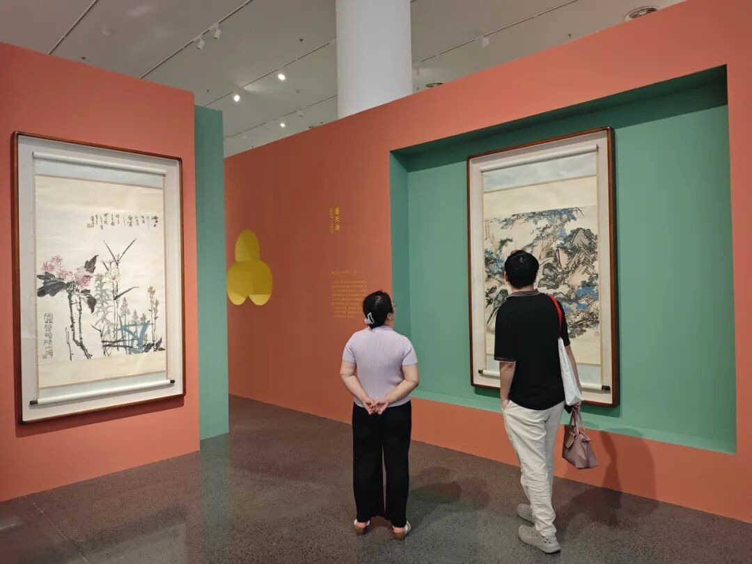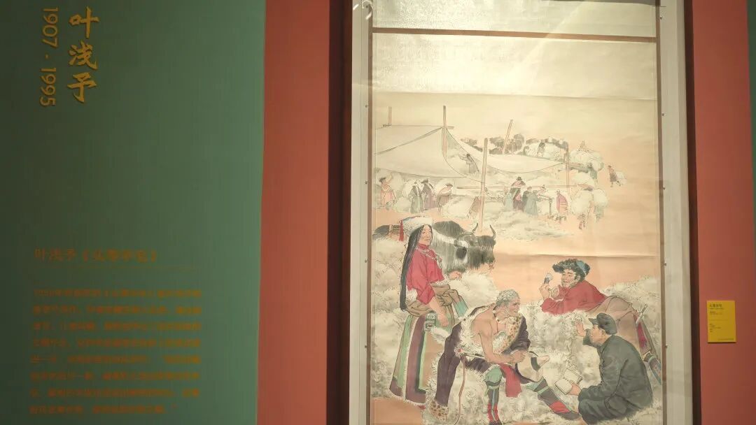 展览现场,徐悲鸿笔下《蒋碧薇仕女像》典雅传神,潘天寿《小龙湫下一角》墨色淋漓,傅抱石《待细把江山图画》气势恢宏,叶浅予《头等羊毛》生动诙谐,关山月《新开发的公路》时代气息浓郁……
