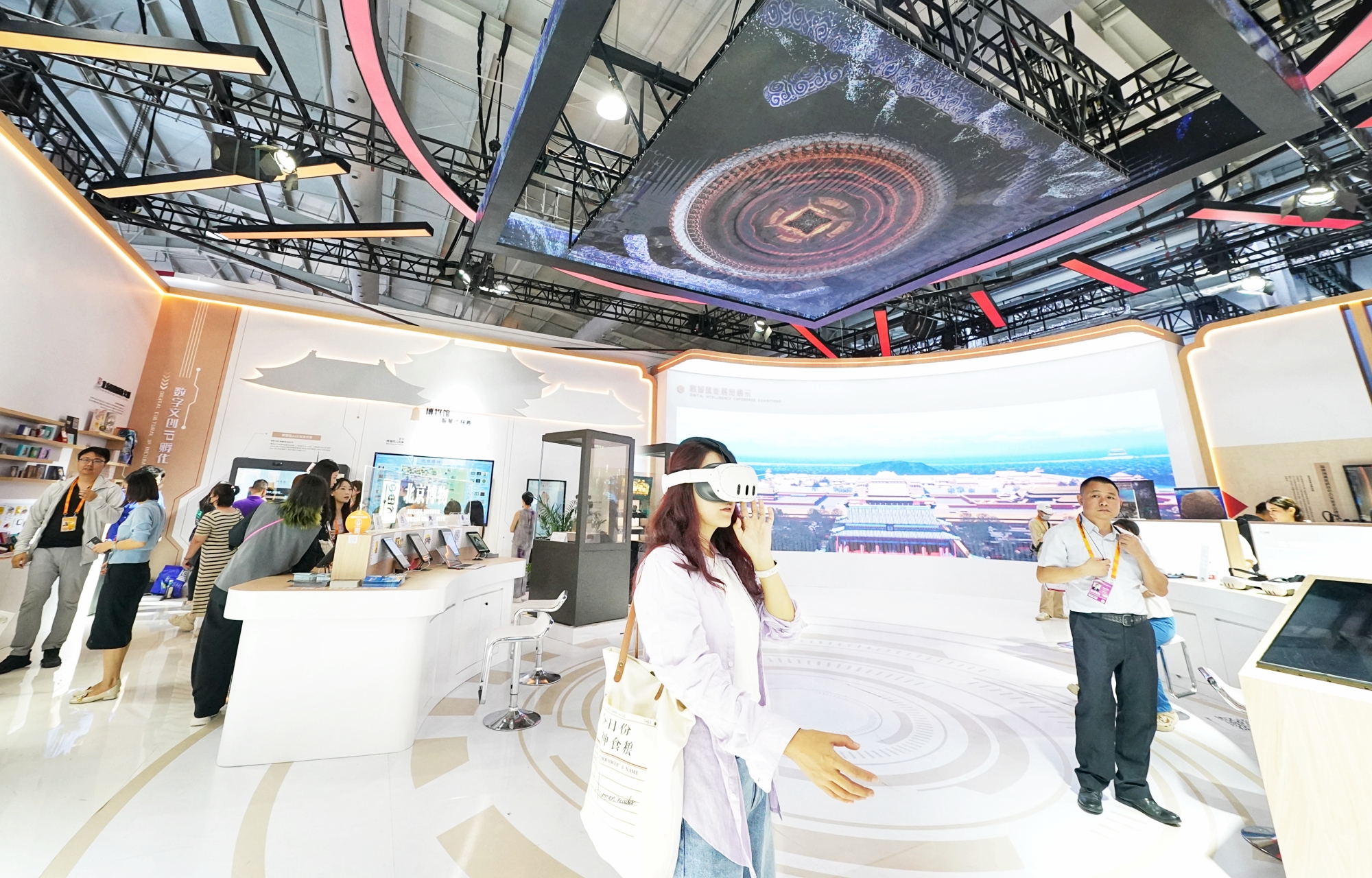 今年不仅是北京中轴线申遗成功一周年,也是北京建城3070年,北京市文物局统筹室内“文博+科技”与室外“文博+生活”两大联动展区,推出了多项沉浸式互动体验科技项目。“戴上MR设备,殷商时期的青铜器仿佛触手可及,连上面的纹路都清晰可见。”历史爱好者张先生激动地说,“这种体验完全颠覆了我对文物观赏的认知。”