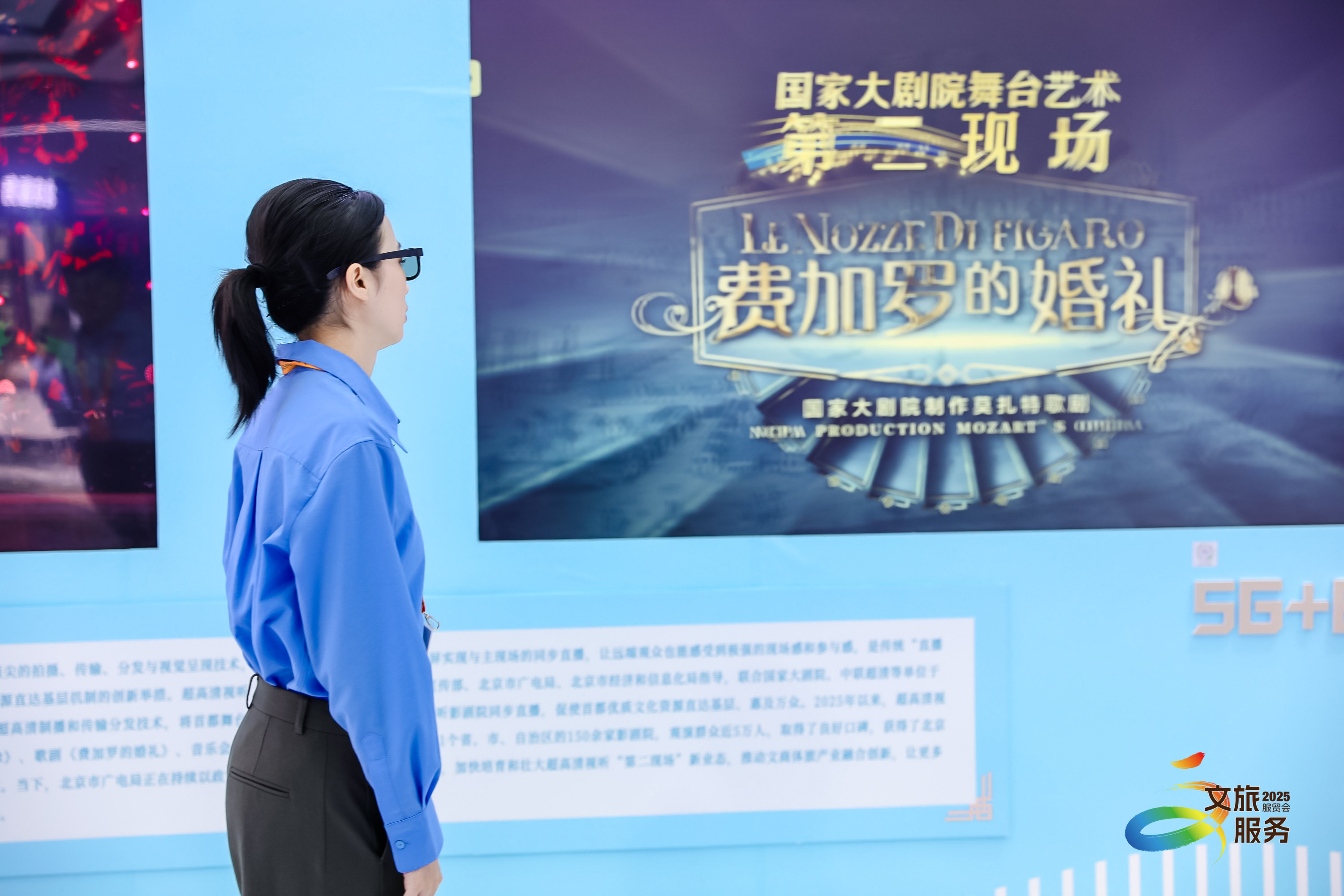 超高清视听区同样人气爆棚。北京市广电局在这里展示了“5G+8K”超高清制播技术的最新应用。观众陈先生是个乐迷,他说,这场歌剧《费加罗的婚礼》剧院级的声画体验,让他顿时忘记了烦忧。工作人员则介绍,这是“北京大视听”2025年推出的超高清视听“超现场”文化品牌,通过顶尖的拍摄、传输、分发与视觉呈现技术,实现千里之外的影院剧院与主现场同步直播,让远端观众获得极强的现场感与参与感。