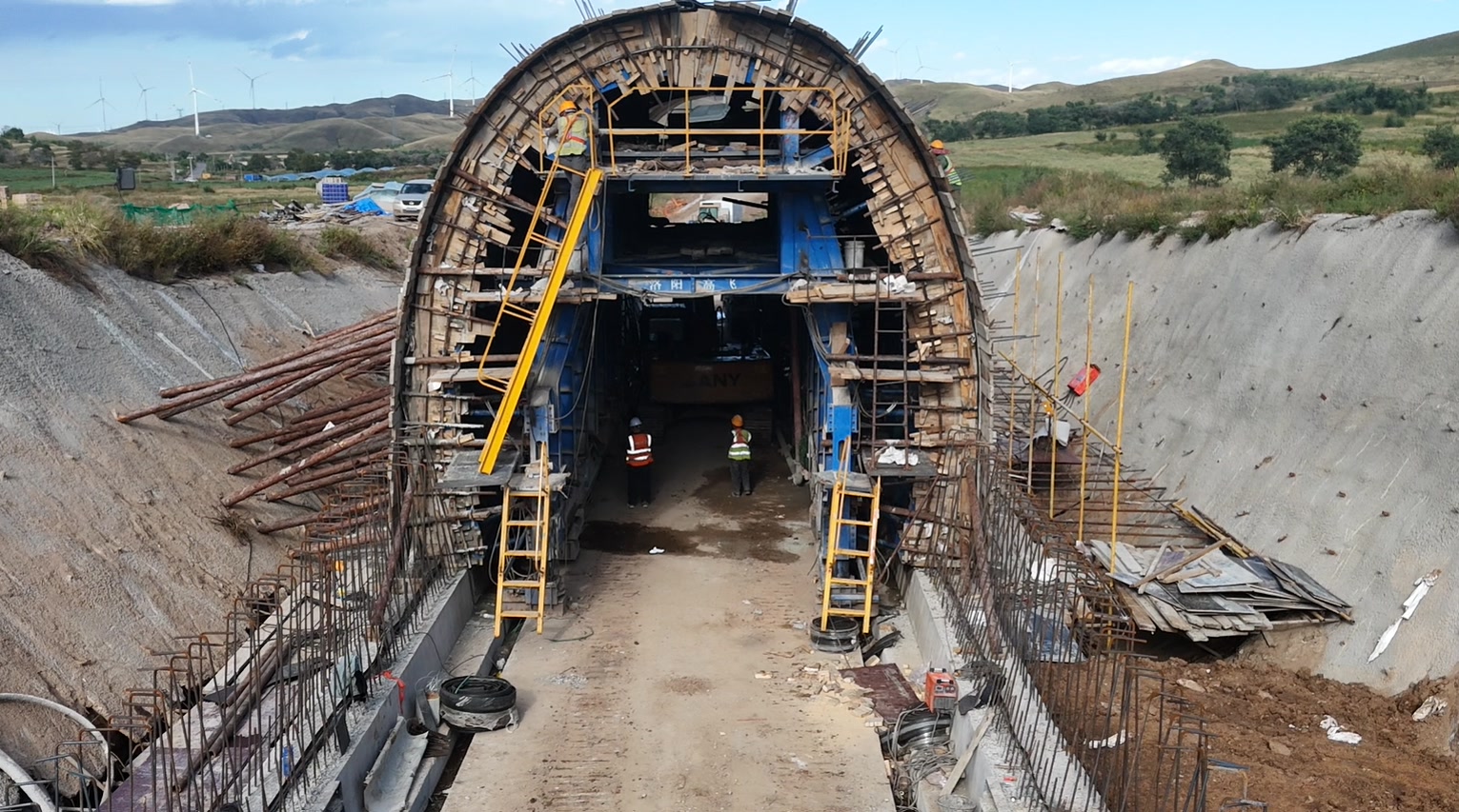太锡铁路河北段二标陈家营隧道由京张城际铁路有限公司建设、中铁二十二局承建。陈家营隧道位于河北省张家口市沽源县白土窑乡陈家营村西南侧,全长929米。该隧道所处位置地势起伏较大,施工环境复杂。隧道施工过程中面临多重挑战:进口段存在偏压且埋深较浅,地质条件复杂;进出口段均与高压电力线路交叉,协调难度大;同时,张家口坝上地区冬季漫长寒冷,最低气温可达零下30℃,极端低温不仅对施工人员的作业环境构成考验,还会影响混凝土凝固、机械液压系统运行等施工质量与效率,给工程推进带来极大困难。