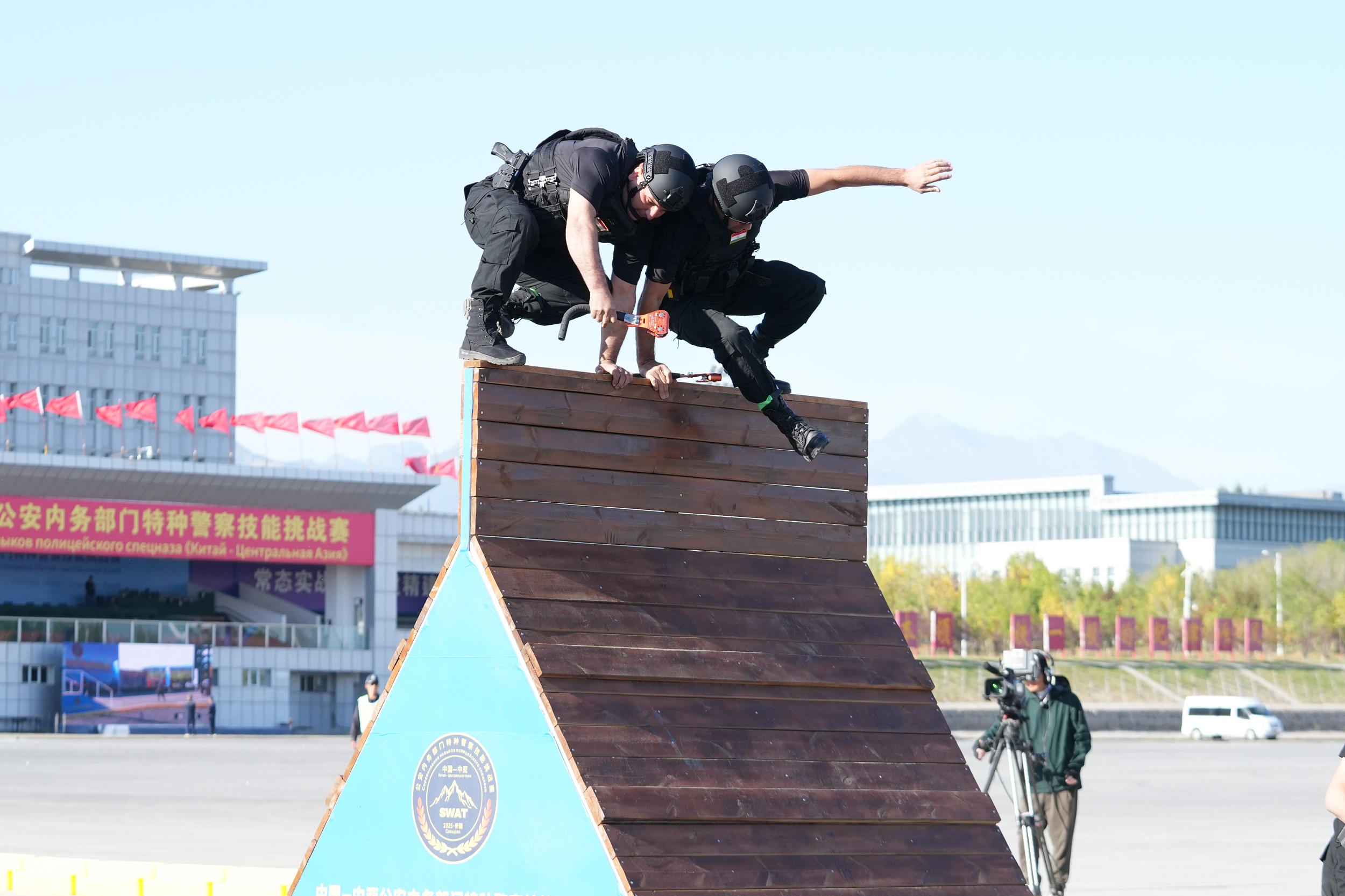 9月10日,随着最后一个科目——争锋行动科目完赛,首届中国—中亚公安内务部门特种警察技能挑战赛在新疆乌鲁木齐顺利闭幕。本届赛事历时3天,来自中国、哈萨克斯坦、吉尔吉斯斯坦、塔吉克斯坦、乌兹别克斯坦5个国家的80名特警参赛队员充分展示了各自的强大实力和飒爽英姿。