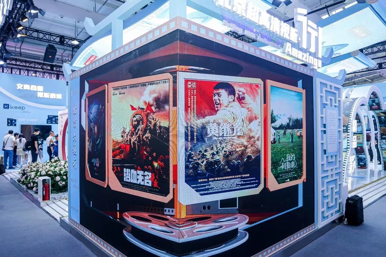 展览设立四大核心板块,全面覆盖大视听生态的关键环节。精品影视板块以“剧目实景复原+影院级裸眼3D”为特色,将《国色芳华》《归队》等多部“北京出品”热门剧集的经典场景“搬”至现场。观众可走入《国色芳华》中1:1复原的刘府庭院,透过裸眼3D与实景结合的方式,实现“从看剧到入戏”的跨越。展览还采用了集内容观赏、实景体验与文创消费于一体的模式——在体验剧景后,观众还能欣赏并购买剧中同款文创产品。