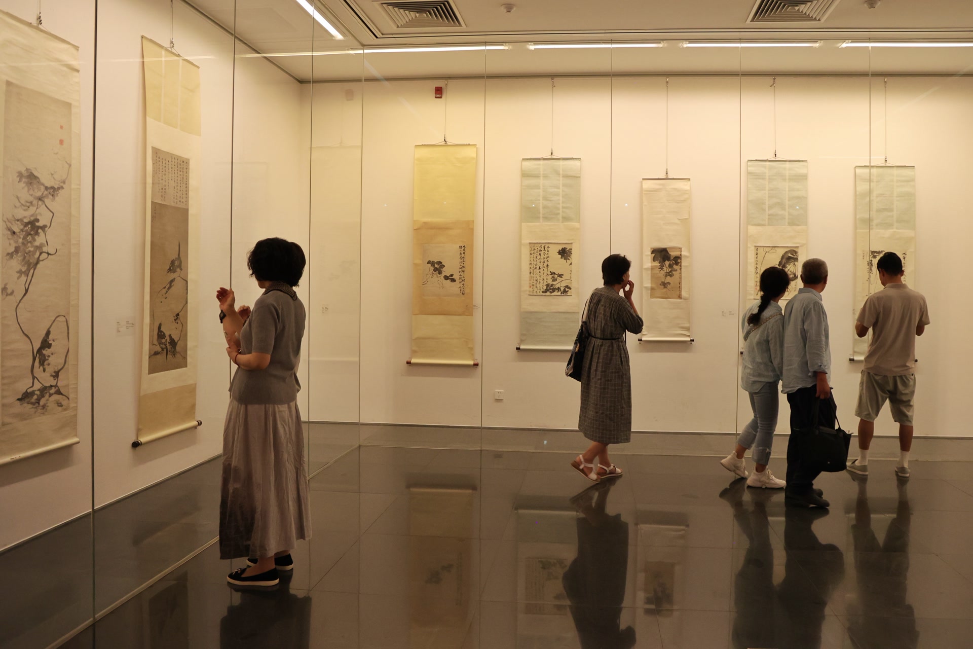 展览展出了徐渭《杂花图》《竹石水仙图》、八大山人《双鹊大石图》《椿鹿图》、吴昌硕《临八大山人鹿图》《设色梅花》、齐白石《墨牡丹》《红梅图》《石上双鸟》等代表作,以及齐白石临摹八大山人的珍贵画稿。将四家相近题材但风格迥异的作品并置,既是直观呈现齐白石的艺术渊源,也从笔墨语言、构图立意到画中所寓生命情味,令观众感受到中国画家生生不息的创造力。