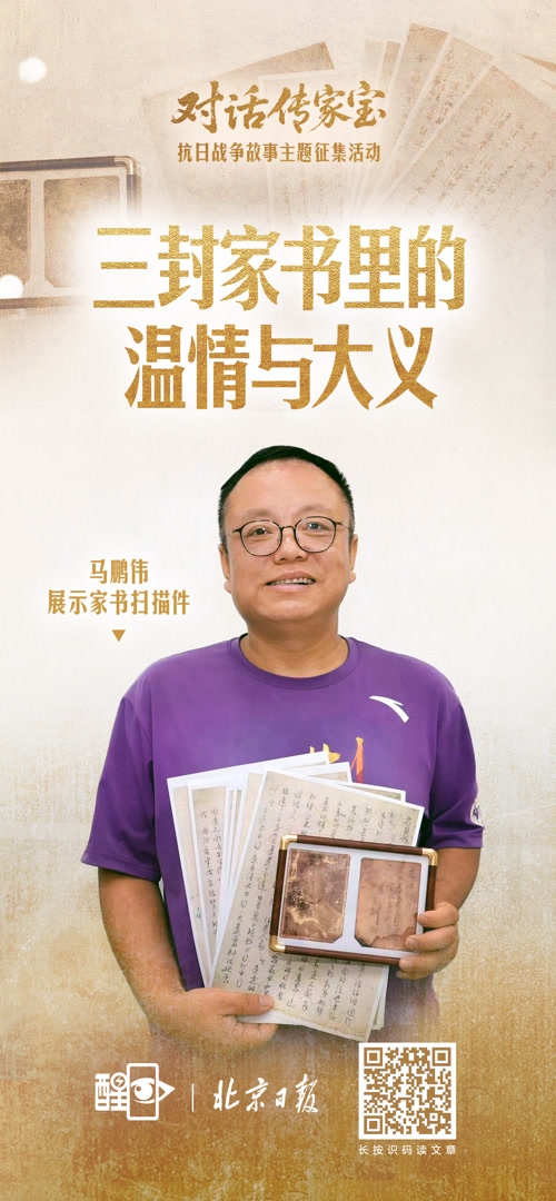 因为原件已经捐献,所以高农斧的重外孙马鹏伟展示的是家书扫描件。通过扫描件,可以看到家书的纸张泛黄、字迹也因岁月侵蚀变得有些模糊,但此时此刻它们仿佛穿越时空,细细讲述着八十余年前的故事。