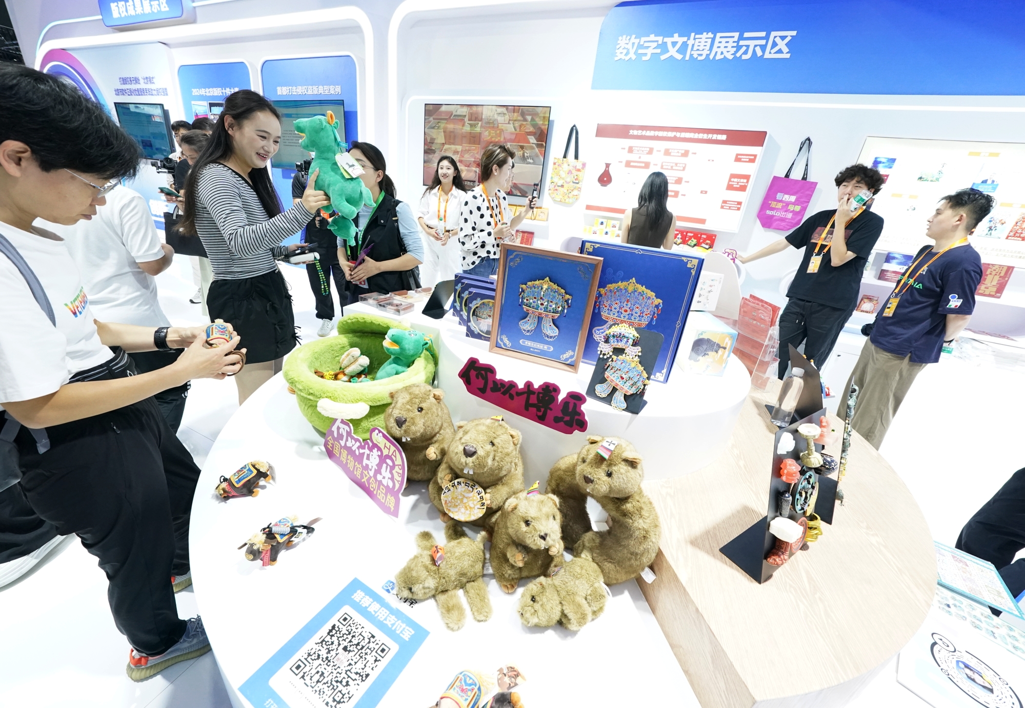五大展示区中,数字文博展示区是文创爱好者不容错过的区域。这里有中国文物交流中心精心策划的“何以博乐”专题,汇聚多家博物馆联名开发的系列文创,这些产品巧妙融合馆藏文物元素与现代审美,在现场通过立体化场景进行展示与销售。