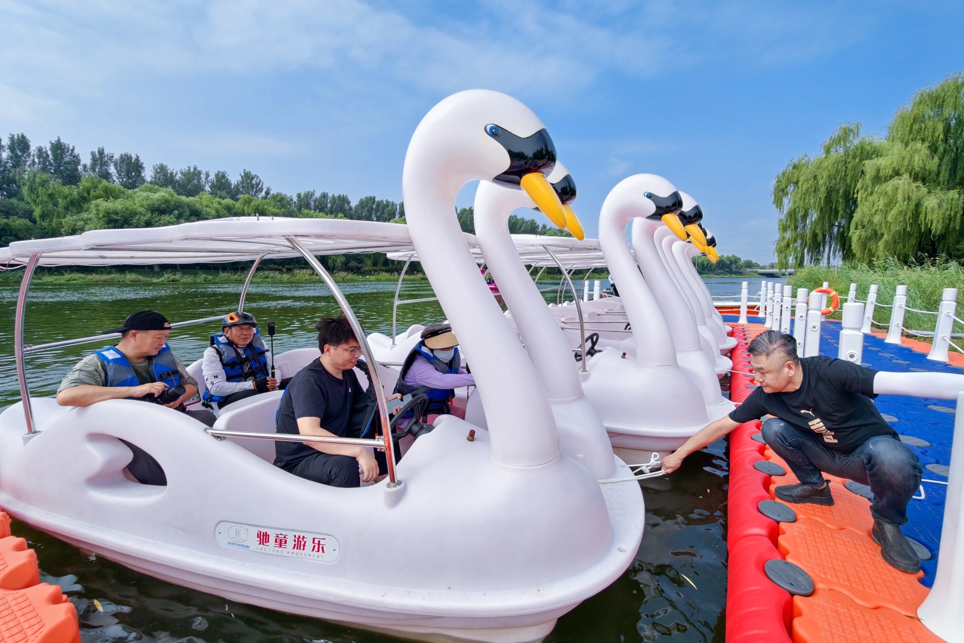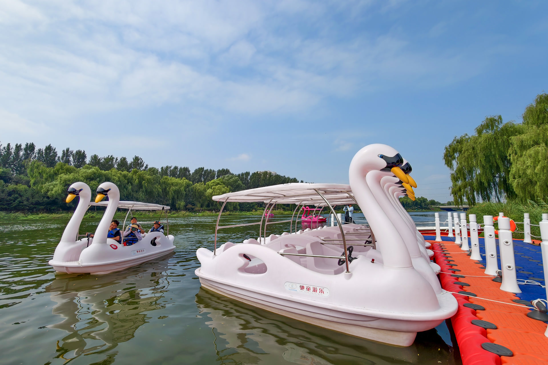 而位于刺猬河天恒水岸壹号南侧的“刺猥河福禄轻航码头”于9月10日开始对外营业,为周边的居民提供了很好的水上休闲赏景的体验。蓝天白云下,清风拂面,三五好友或是一家人,坐着游船,欣赏沿岸美景,好不惬意。