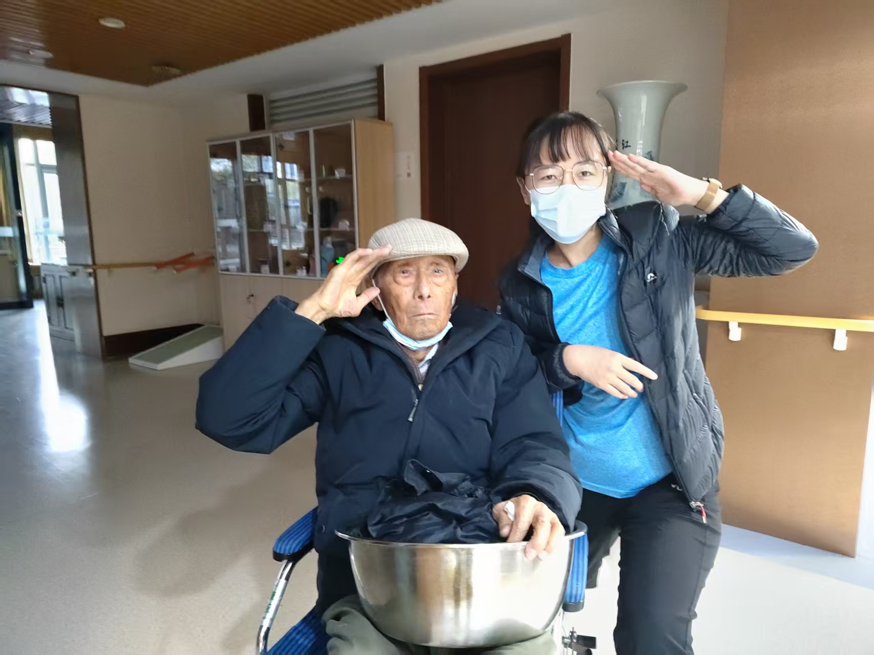 在梁爽看来,照护也不是单向付出,而是彼此支撑。抗美援朝老兵刘爷爷入住时,深受阿尔茨海默症困扰,情绪暴躁,甚至会挥拳打人。梁爽的眼镜曾被老人打飞,可她并没有退缩,而是学着用“军人命令”的语气引导他吃饭,用“向首长汇报”的方式沟通护理。渐渐地,老人眼中闪过久违的坚毅,还教她“三点一线”瞄准射击的方法。有一次,老人突然认真地对她说:“你生孩子吧,我每月退休金都给你,不用担心养不起。”那一刻,梁爽笑着,却红了眼眶。