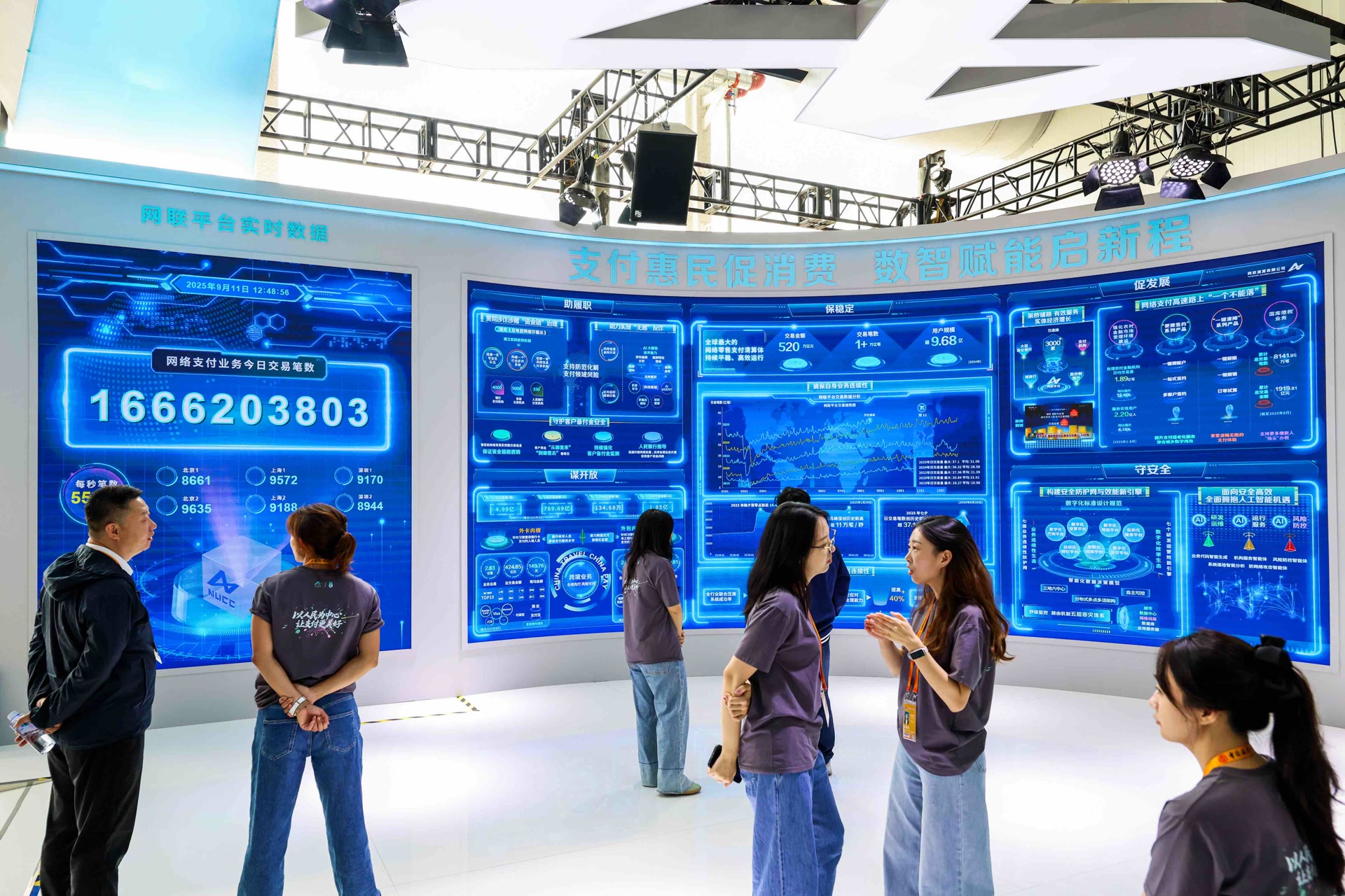 网联清算公司首次在服贸会展台设置实时交易数据直播展示区,让参展观众直观感受全球交易笔数最大的零售支付清算机构面对海量支付交易时,如何通过“三地六中心”分布式云计算架构保障网络支付体系的高效运转。观众还能在展台现场参与反诈互动答题,进一步提升防诈意识和能力。