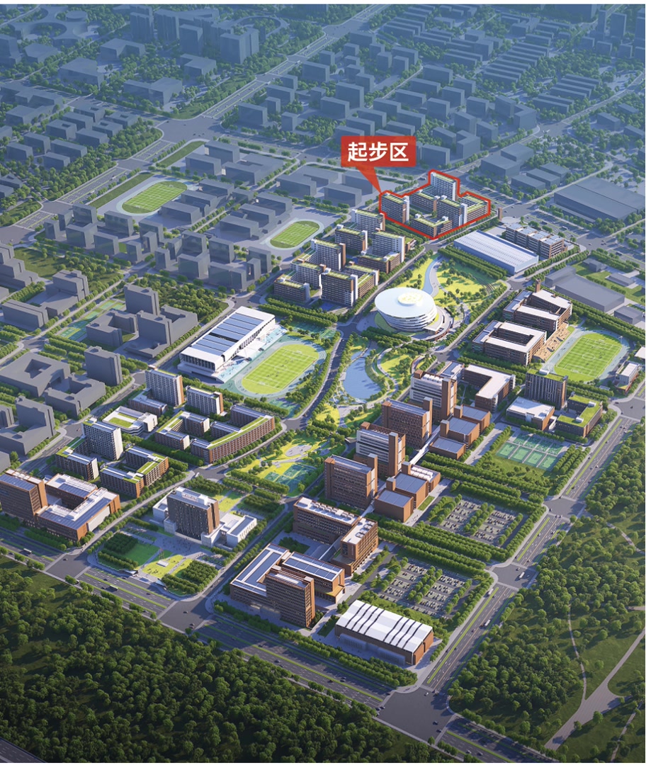 北工大新校区分一期、二期及拓展区,计划重点布局建设信息、高端装备与新能源、未来城市建设、新材料技术物质科学、绿色化学与智慧化工、生命健康六大学科群。其中,一期占地约71.46公顷,东至清苑南街,南至规划兴良路,西至规划景辰街,北至白杨东路,总建筑面积约117万平方米,规划在校生规模约2万人。目前,位于一期西北角的起步区本科生宿舍组团项目正在建设,共规划4座本科生宿舍楼。此外,一期校园以“十字联城,轴带共长,化直为曲,合理布局”为设计理念,致力于打造国际化学术高地,构筑友好式活力校园。