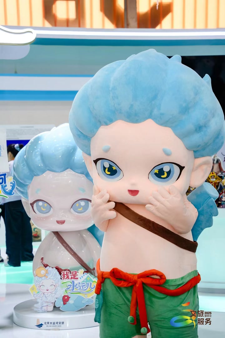 大运河主题IP“河喜”和“水运儿”也于服贸会首发。“河喜”由韩美林大师设计,以镇水神兽为原型,传递“河泽生喜”的美好寓意。“水运儿”由泡泡玛特设计,以萌趣国风形象传播运河文化,通州区围绕该IP开发盲盒、动态贴纸等产品,吸引年轻人了解运河历史。