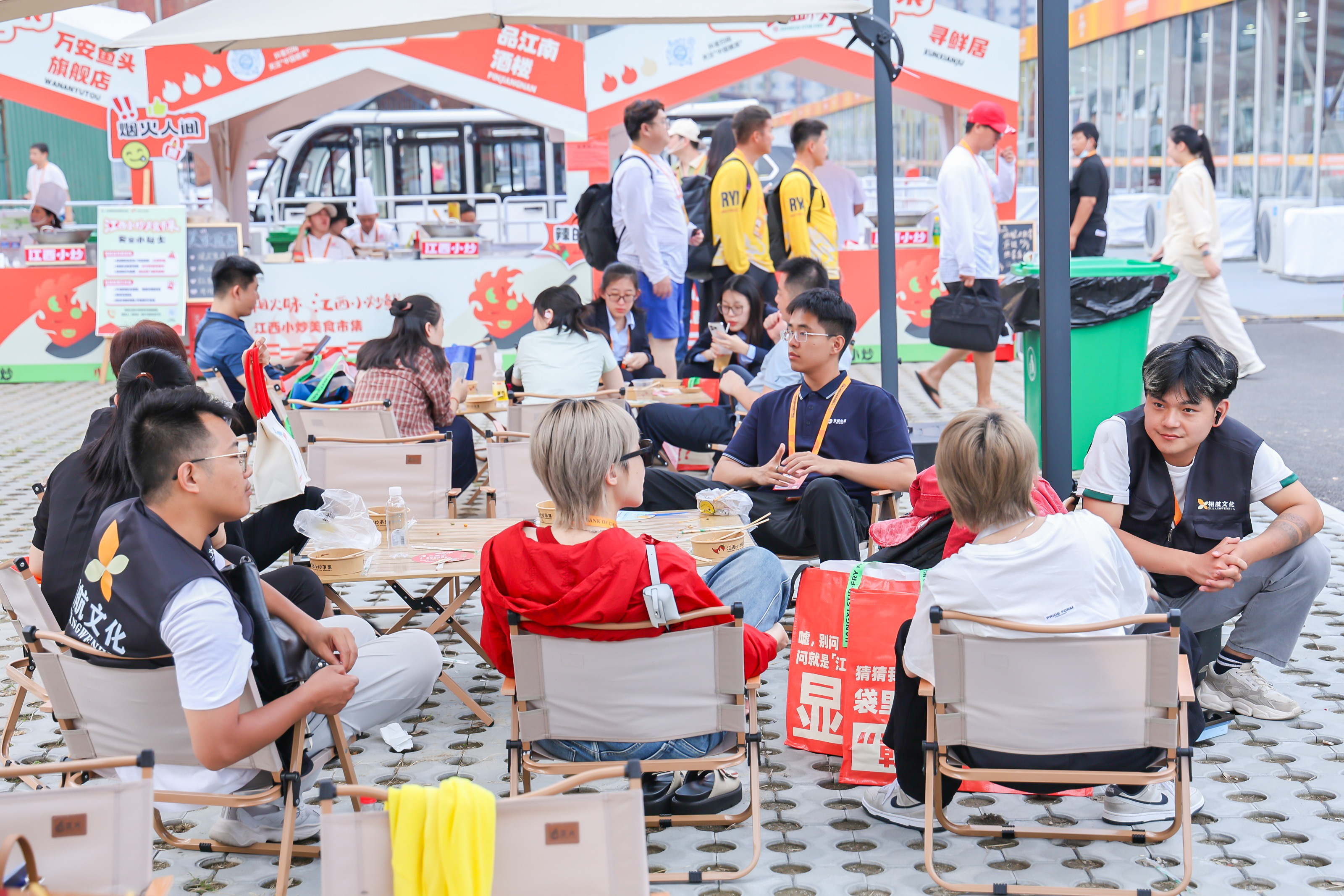 南昌拌粉、临川牛杂、赣南鱼饼、南昌啤酒鸭……走进市集,各个摊位都正热火朝天地烹制美食,其中一家摊位上的南昌啤酒鸭正要出锅,香味飘出老远。“都是现炒现卖的,没有预制菜。”师傅边颠勺边说。