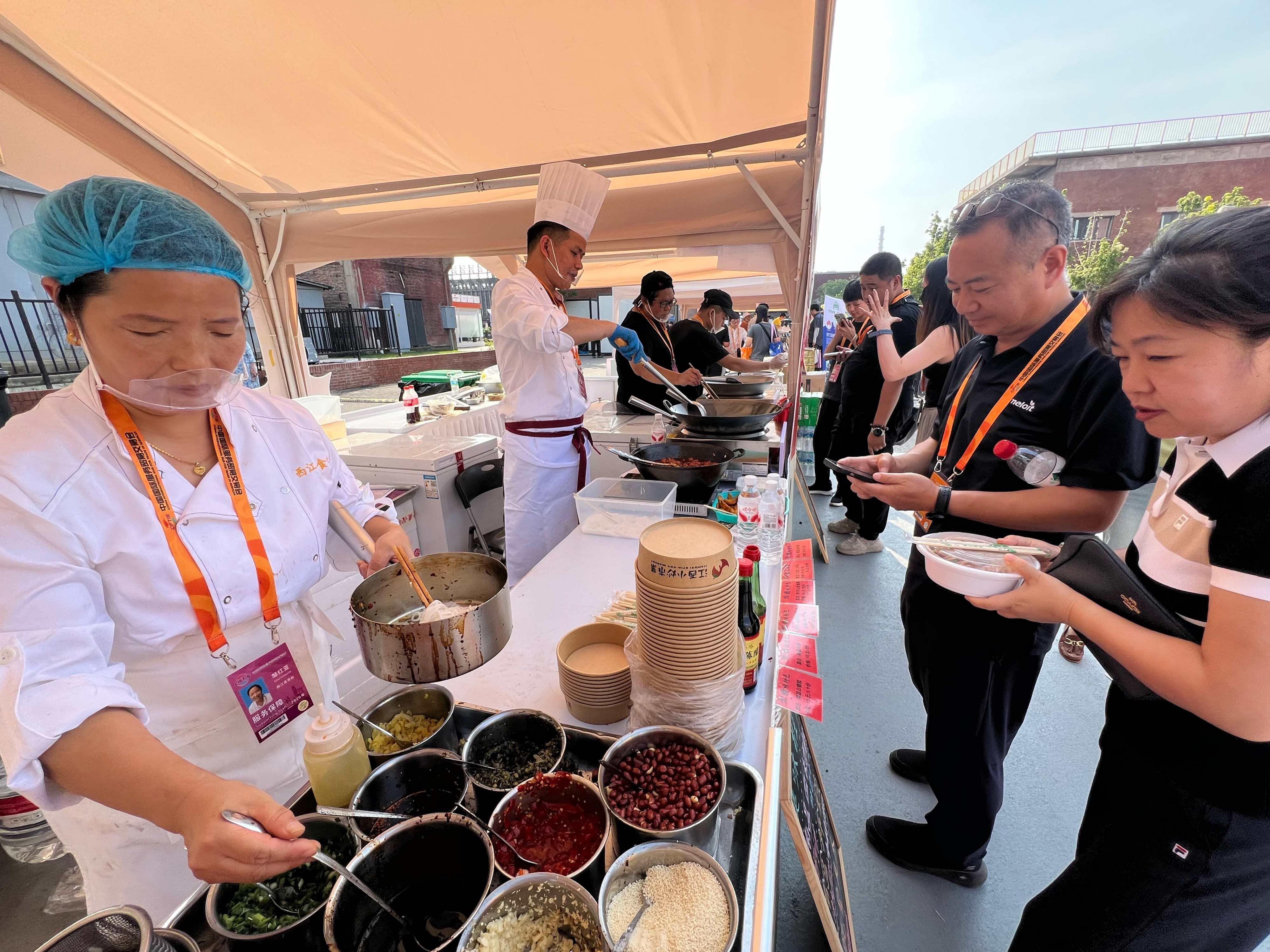 9月11日中午,位于首钢园内的江西小炒美食市集阵阵飘香,参展观众纷纷前来品尝地道江西小炒,16家来自当地的知名小吃、小吃和文创企业参展,为观众带来热辣鲜香的赣菜风味。本届服贸会,首钢园区共24个餐饮点位为现场观众提供餐食保障,较往年大幅增长。