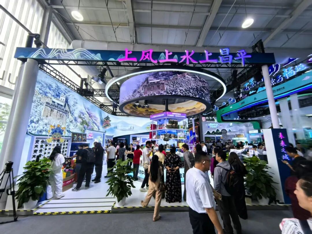 走进9号馆文旅专题昌平展区,在“昌盛平安地 活力宜居城”的主题下,113平方米空间为观众开启一场时空旅行。