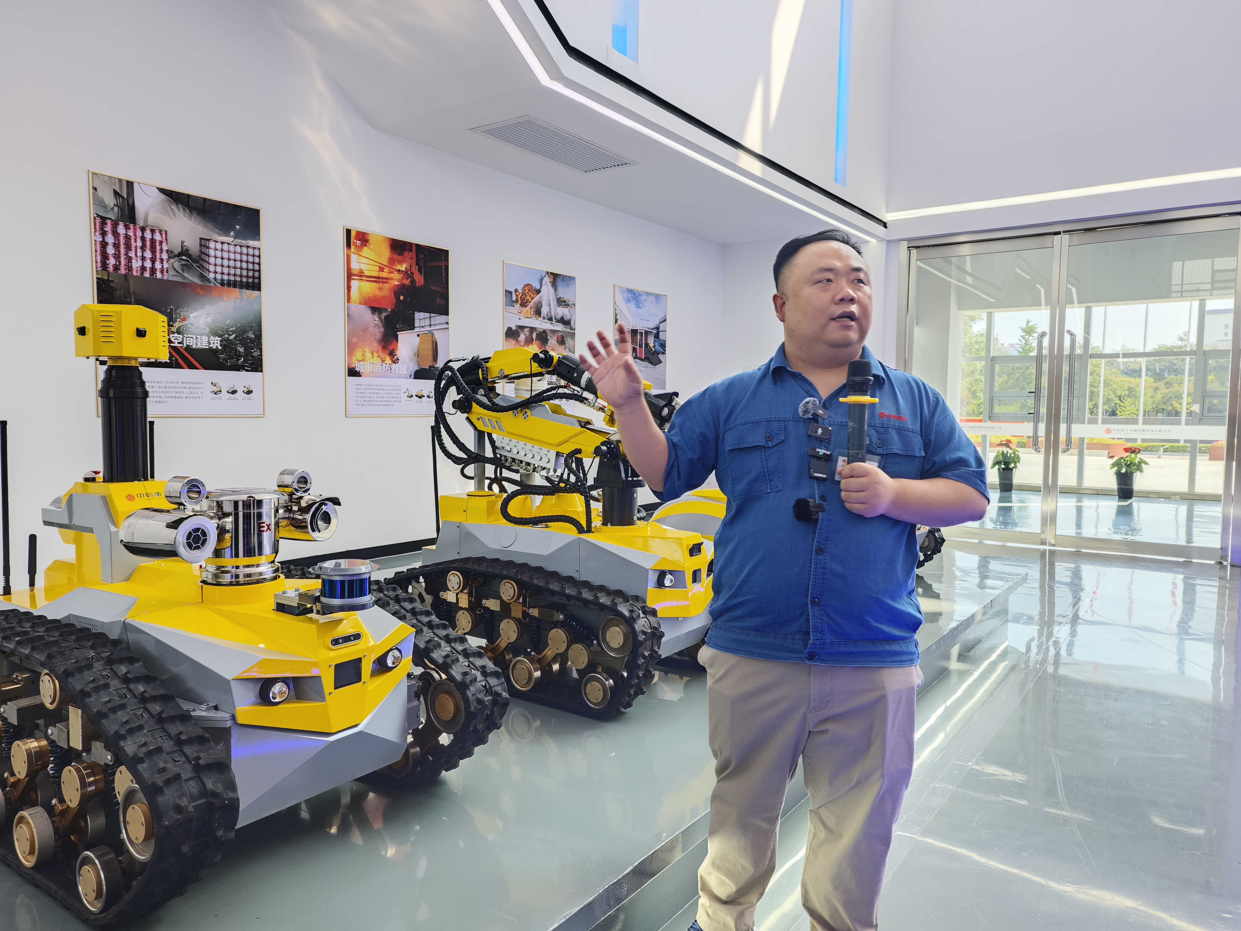在中信重工开诚智能有限公司展厅,一支机器人“天团”震撼亮相:消防灭火机器人,消防水炮最大流量每秒80升,射程可达85米,相当于8名消防员在灭火工作;煤矿作业机器人,能够代替井下工人执行巡检、喷浆、异物分拣等多类型任务;水下机器人,下潜深度可达300米……