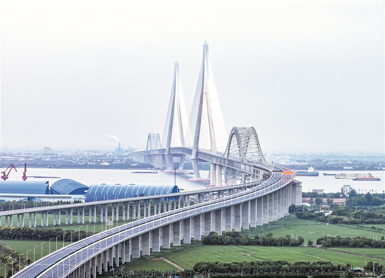 从“拥江发展”到“跨江融合”,长江两岸迎来新繁荣。目前,江苏已累计建成过江通道20座、在建9座,基本实现隔江相望的县(市、区)均有过江通道联通。大桥脚下,黄金水道千帆竞发;钢铁脊梁,撑起车流如梭要素往来。一座座发展之桥、信心之桥,传递出一个国家、一个时代笃行实干、迎难而上的精神力量。坚持科技创新,坚持协同发展,这片土地终将铺展更为壮阔的未来图景。