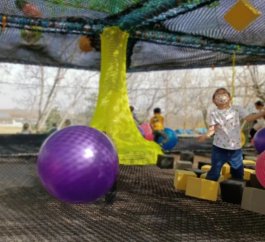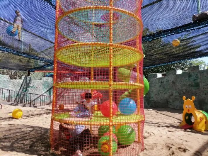 高高的网绳堡垒,非常适合孩子们在这里拓展、跳跃、攀爬,下面还有超大的沙海哦~
