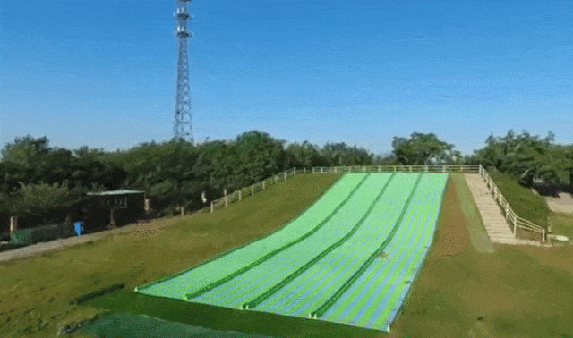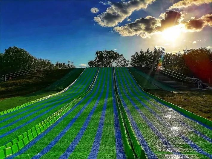 这里的草坪大滑道,在风和日丽的天气下,也能享受到滑雪畅快,坐上雪圈,从顶端滑下,承载着欢声笑语!