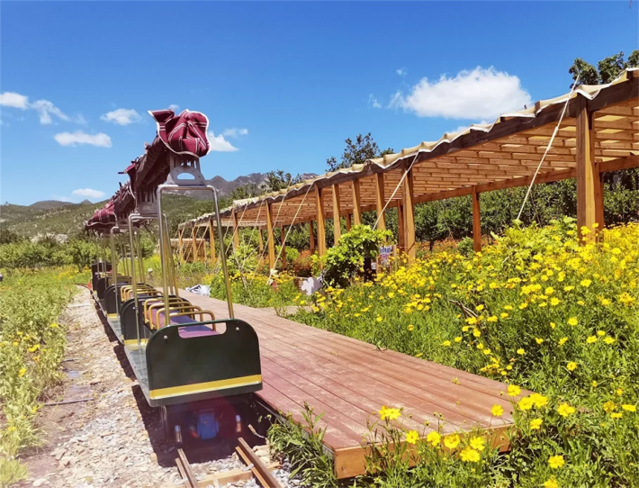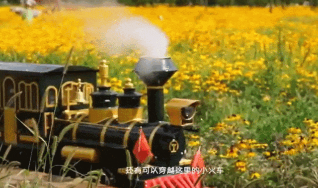 春夏秋,这里就是一片花海,咱们就坐着这辆小火车,遨游在花海中吧!